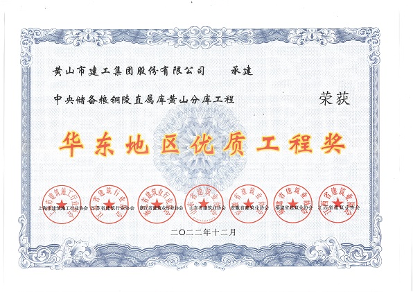 由黃山建工集團股份有限公司承建的“中央儲備糧銅陵直屬庫黃山分庫工程”榮獲華東地區(qū)各省建筑業(yè)協(xié)會聯(lián)合頒發(fā)的“華東地區(qū)優(yōu)質(zhì)工程獎”。